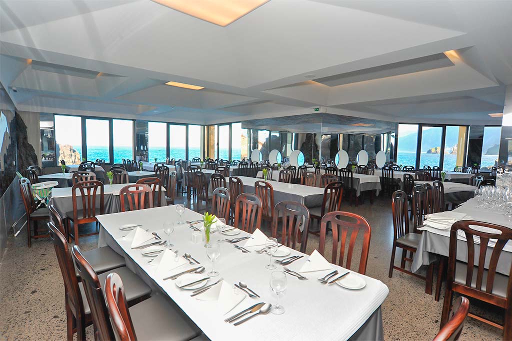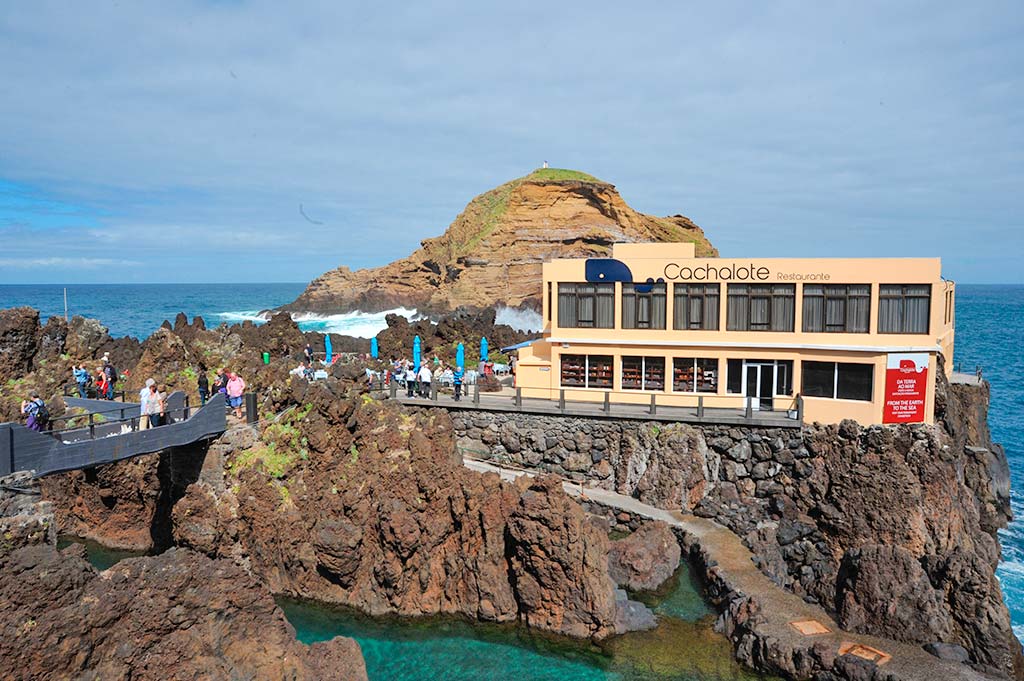 The restaurant "O Cachalote" was built in 1969 in the fishing village of Porto Moniz which is a place where every tourist who comes to Madeira must visit. It is distinguished for its construction on the volcanic rocks surrounded by the sea which also originated the natural pools and thus giving it a natural rare beauty.